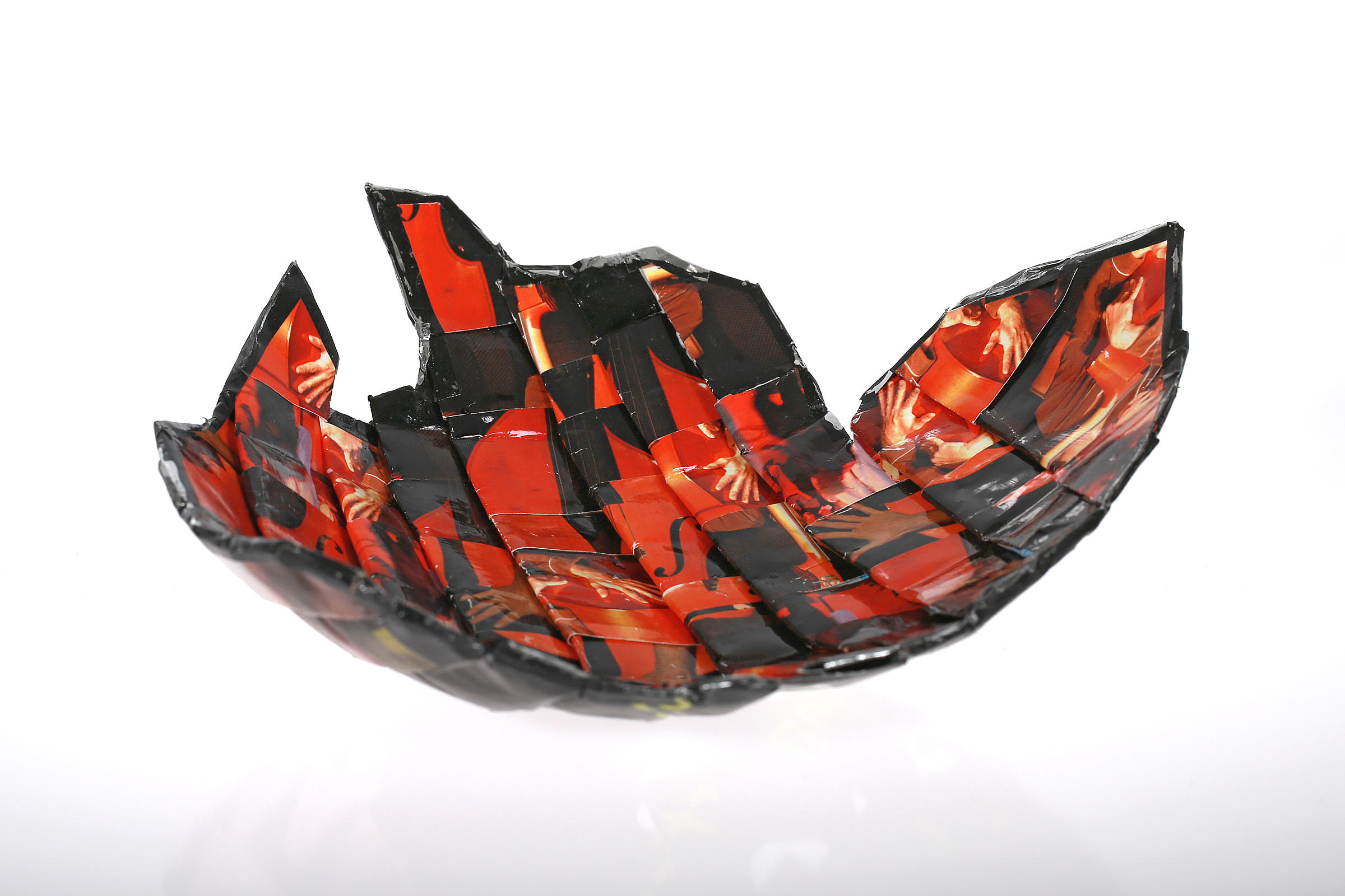 Material: Altpapier, alte Flyer und Plakate, Tape, Acryllack glänzend